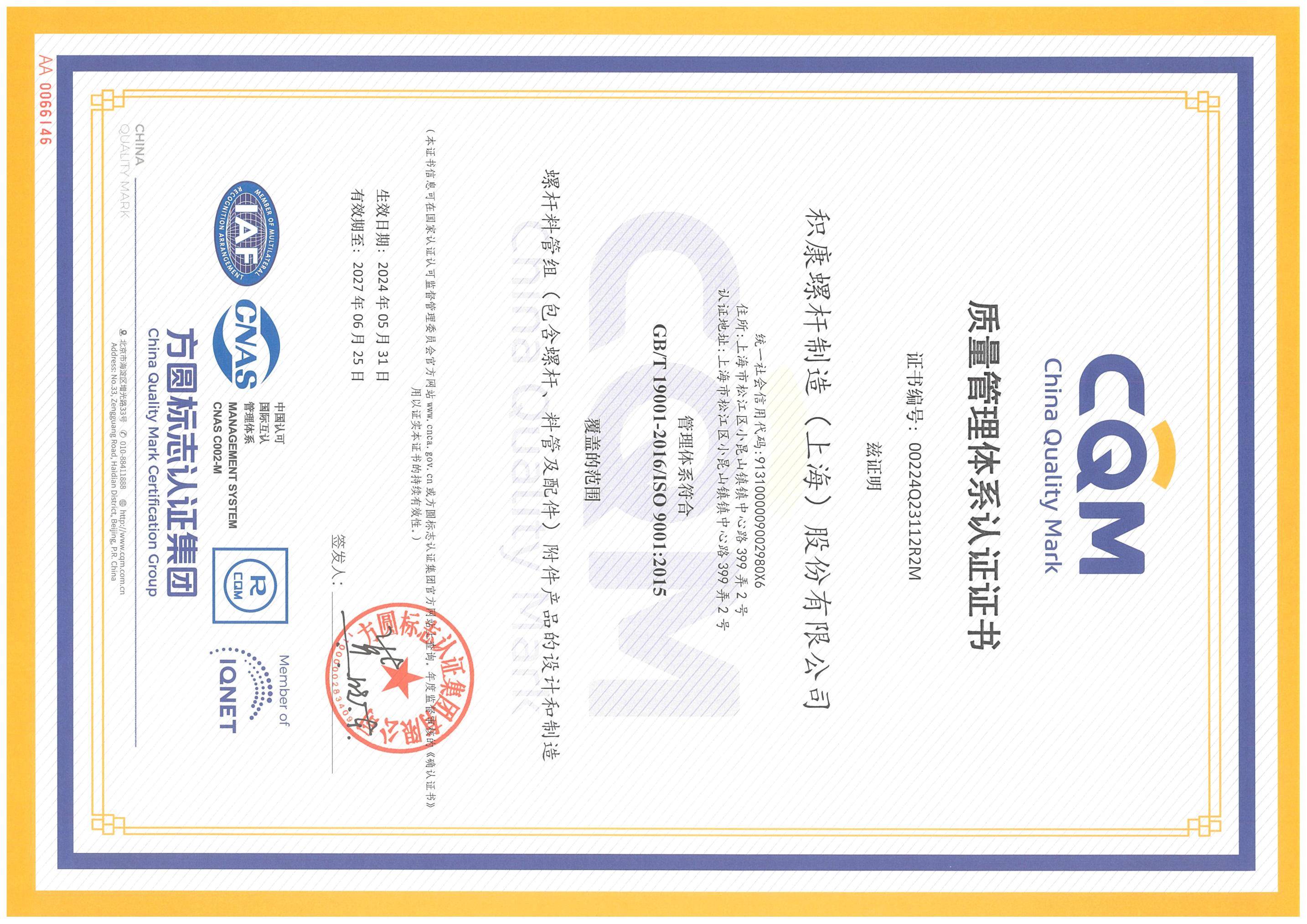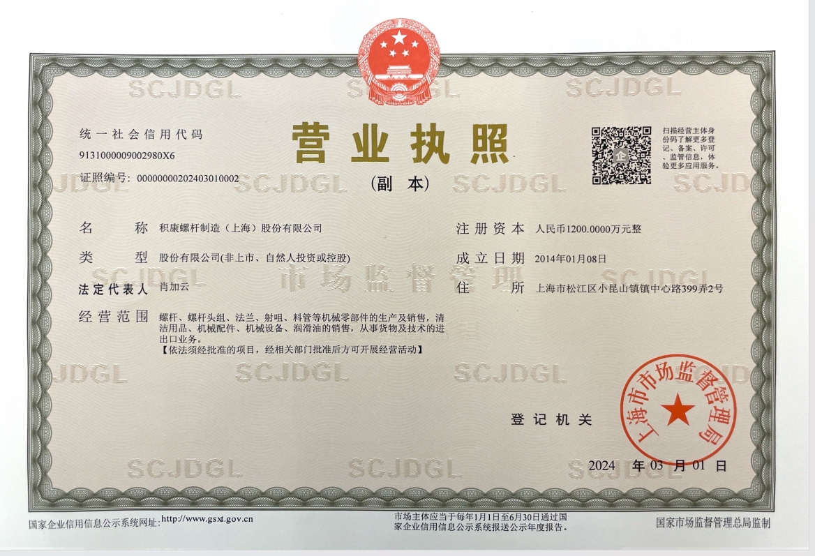 积康螺杆制造(上海)股份有限公司